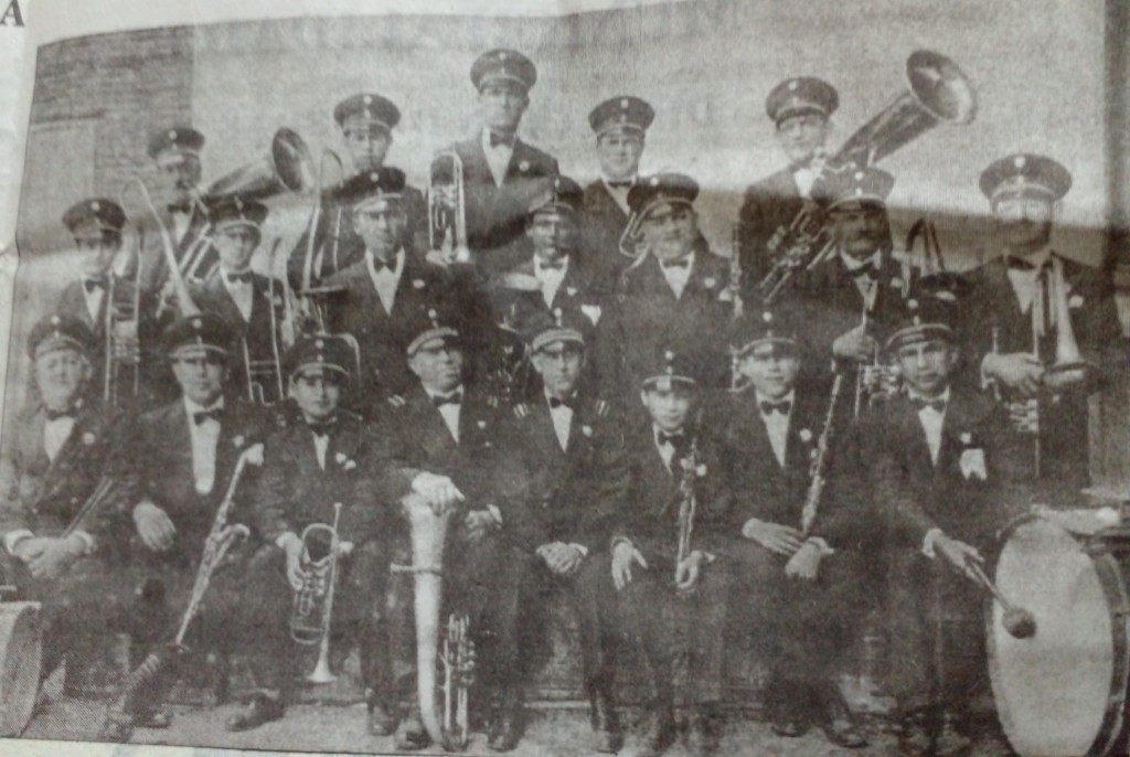 La imagen captura un momento atemporal en la cultura musical de nuestro distrito. Jóvenes y adultos, vestidos con el característico uniforme de banda que representaba con orgullo a Magdalena, posan frente a la cámara. Desde la izquierda hasta la derecha y de arriba hacia abajo, sus nombres se convierten en versos de una canción perdida en el tiempo: Hipólito González, Héctor Mariano, Mario Corsiglia, Mosto, Burgos, Benedetti, Floro Conti, Jorge Mariano, Lozada, Segundo Alemani, Sarmiento Vassena, Alberto Martínez, Carlos Barletta, Nani, Juan Gentile (director), Raúl Barletta, Gabino Di Sorio y Eduardo Giacoy.