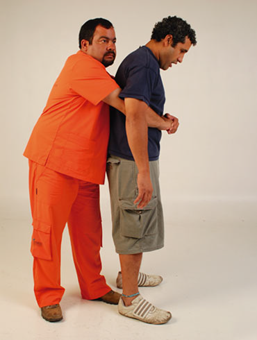 Abrazar a la persona por la espalda y por debajo de sus brazos.