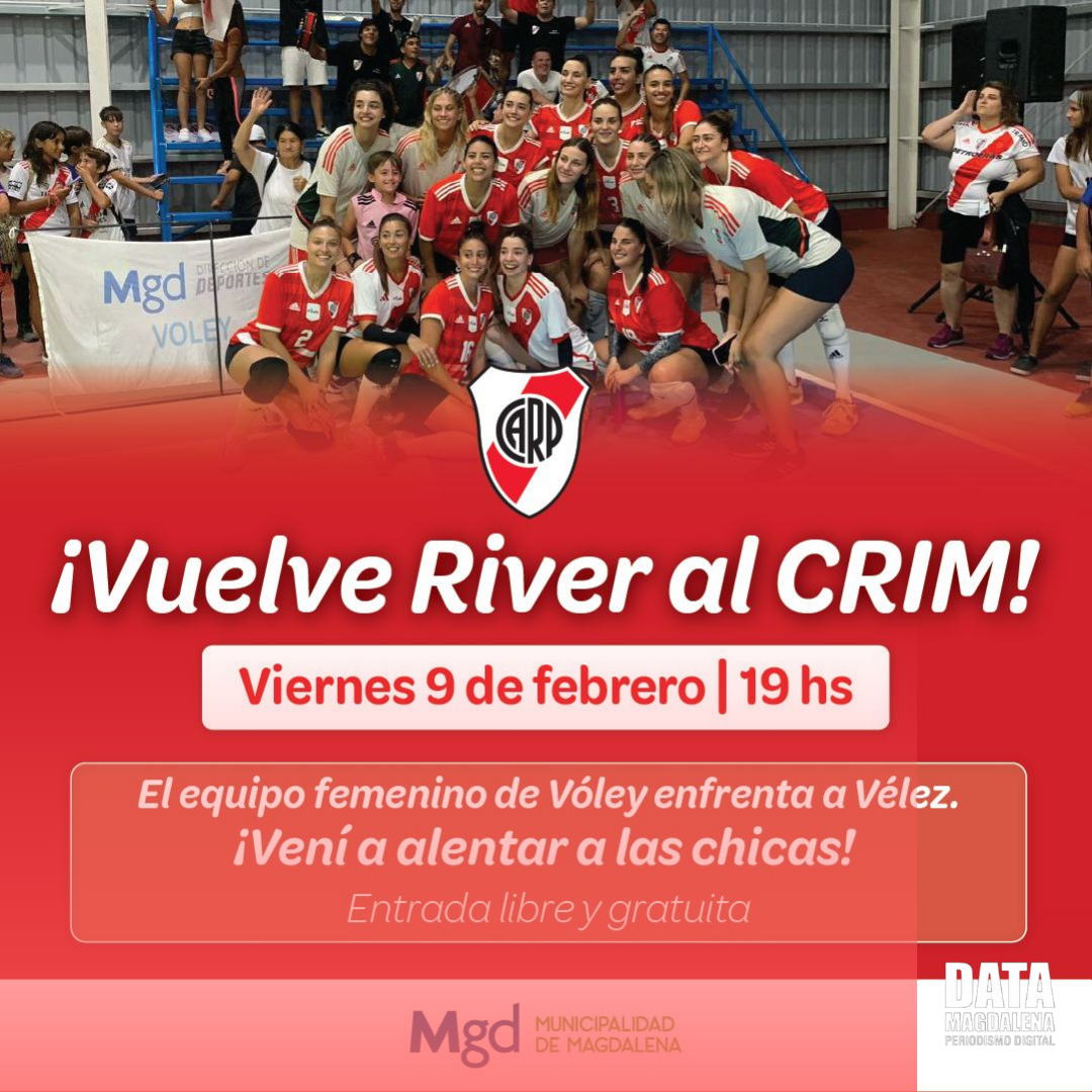 ↪️Este viernes, desde las 20hs, el equipo femenino de vóley de River Plate se enfrentará a su rival de Vélez Sarsfield por la Liga Argentina Femenina 2024. El partido corresponde al Weekend 3 y marca la segunda vez que las Millonarias juegan en el nuevo gimnasio del Centro de Recreación Integral de Magdalena (CRIM).