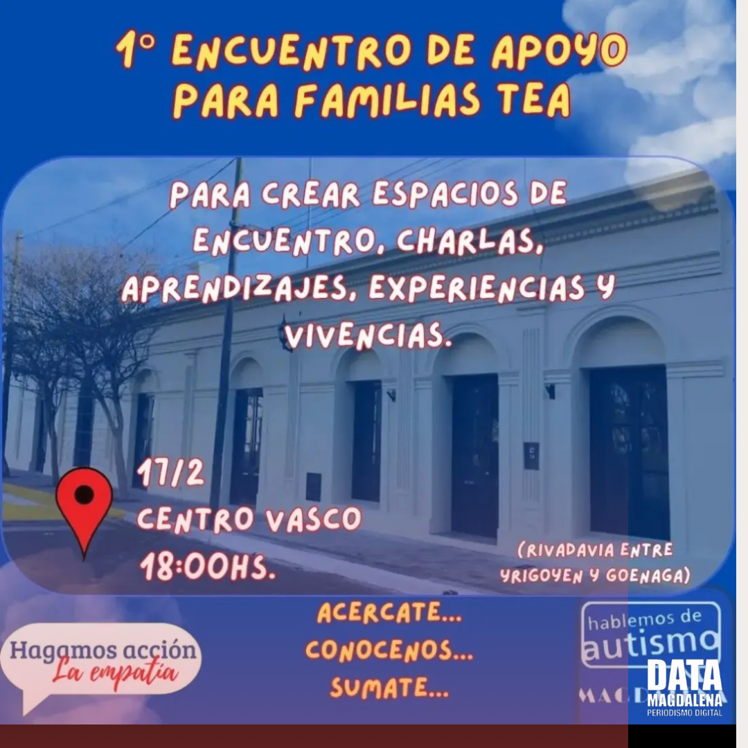 ↪️Mañana a las 18hs, en el Centro Vasco de Magdalena, frente a Plaza San Martín, se llevará a cabo el primer encuentro familiar organizado por Madres Padres TEA Magdalena. Este evento busca crear un espacio de diálogo y apoyo mutuo entre familias que conviven con el Trastorno del Espectro Autista (TEA). Conversamos con Ana Clara Romano, integrante de la organización, quien compartió detalles sobre esta iniciativa y reflexionó sobre la situación actual.