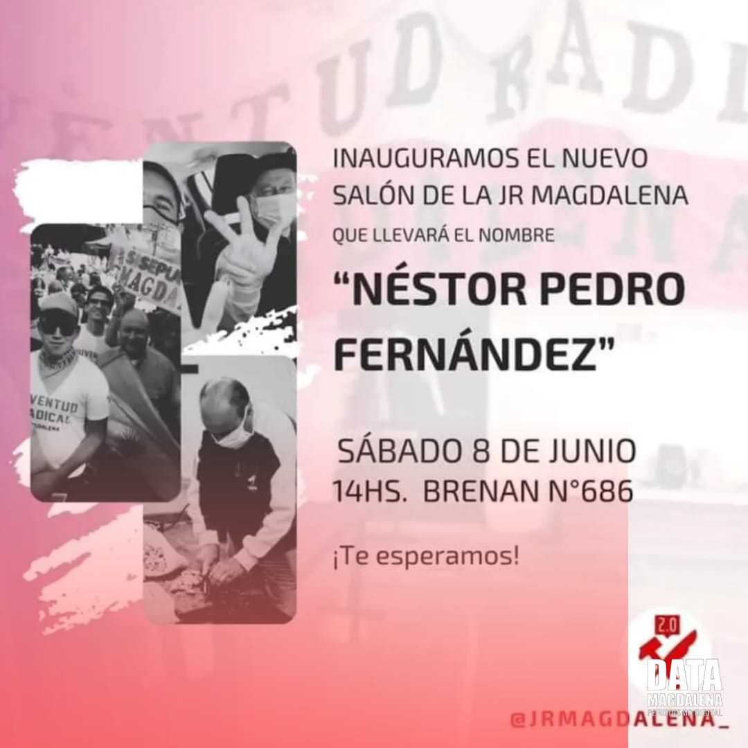 ๐Ÿ•˜ Las actividades iniciarán a las 10:30 hs con las acreditaciones de los participantes. A las 11:30 hs, Tamara Perrone, Presidenta de la Juventud Radical de Magdalena, junto al Intendente Municipal, Lisandro Hourcade, darán las palabras de bienvenida e inauguración de la jornada. Es un homenaje para los radicales nombraran la oficina en honor a Néstor Pedro Fernández, quien con su militancia y consejos formó a gran parte de los miembros de la actual Juventud de Magdalena.