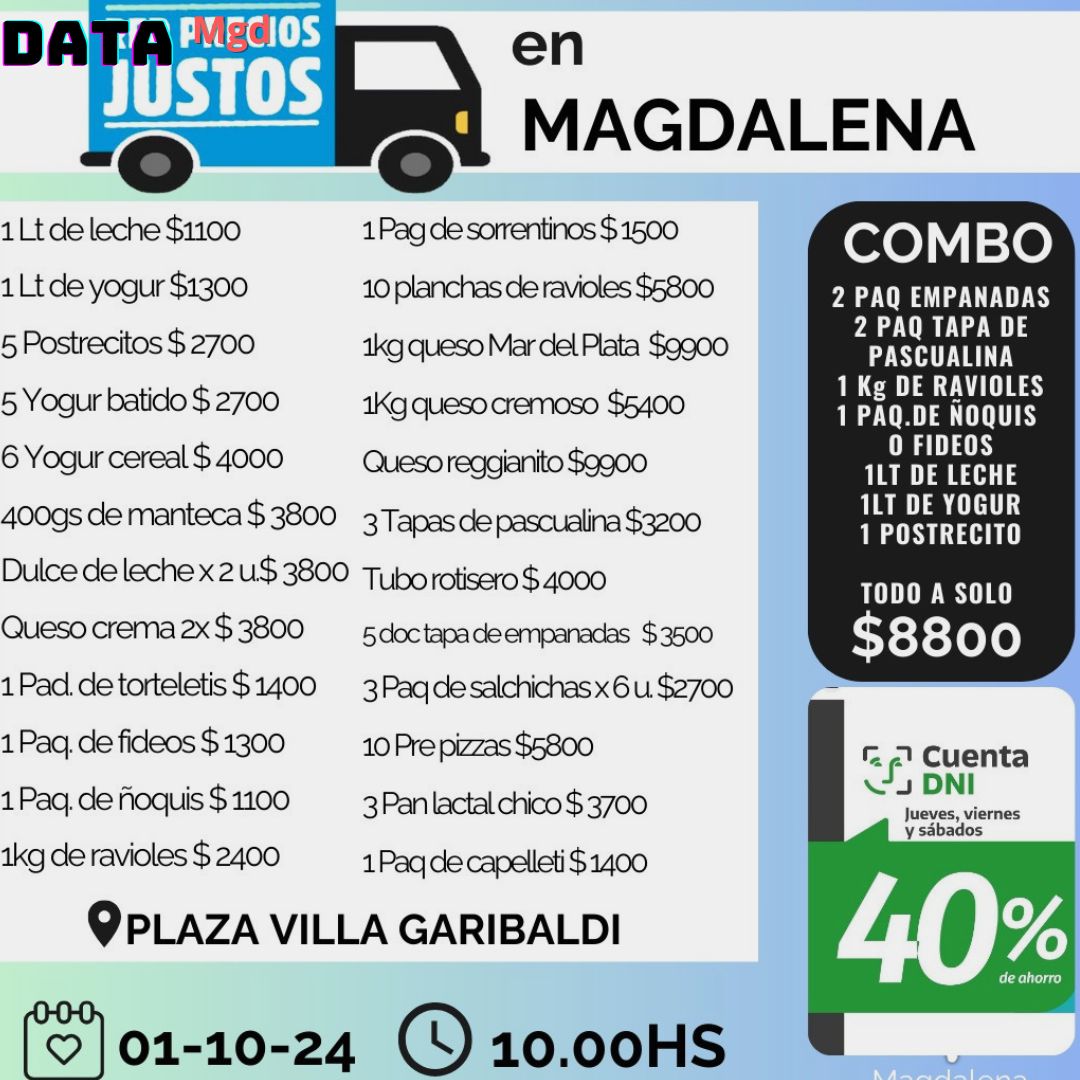 👉Precios Justos vuelve mañana a Villa Garibaldi y Productores Bonaerenses a Bavio con productos frescos y descuentos del 40% para quienes abonen con Cuenta DNI.