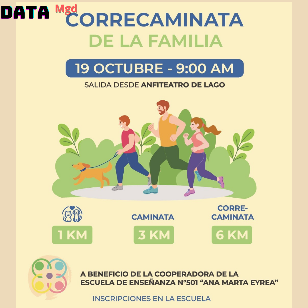 🏃♂️ Este sábado 19 de octubre, a partir de las 9 hs, el Anfiteatro será el punto de encuentro para una jornada deportiva y solidaria organizada por la Escuela N°501. El evento, pensado para todas las edades y niveles, contará con tres distancias: 1 km, 3 km y 6 km.