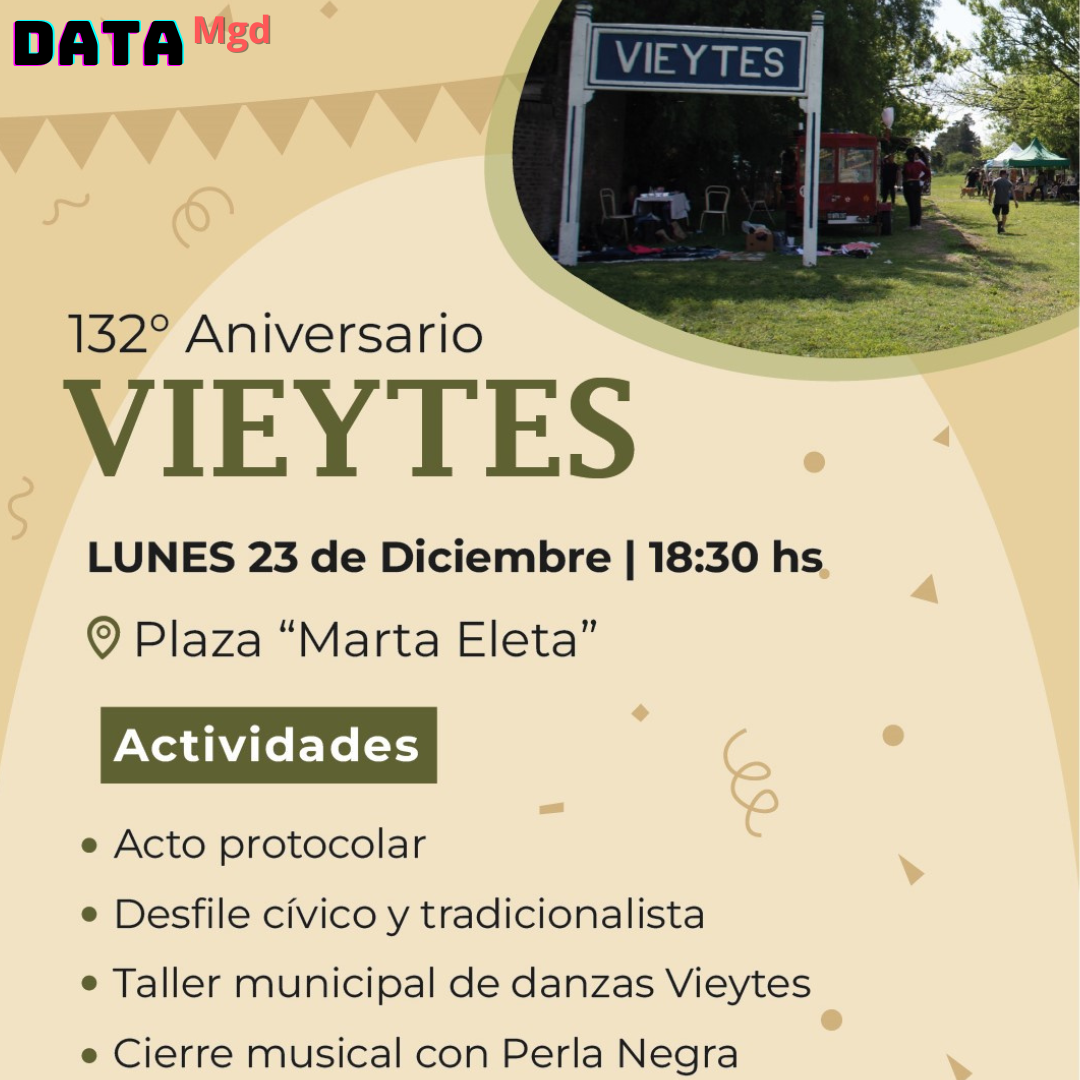 🎊 “Invitamos a toda la comunidad y a localidades vecinas a sumarse a esta celebración. Es una fecha muy importante para Vieytes y queremos compartirla con todos”, expresaron las autoridades municipales.