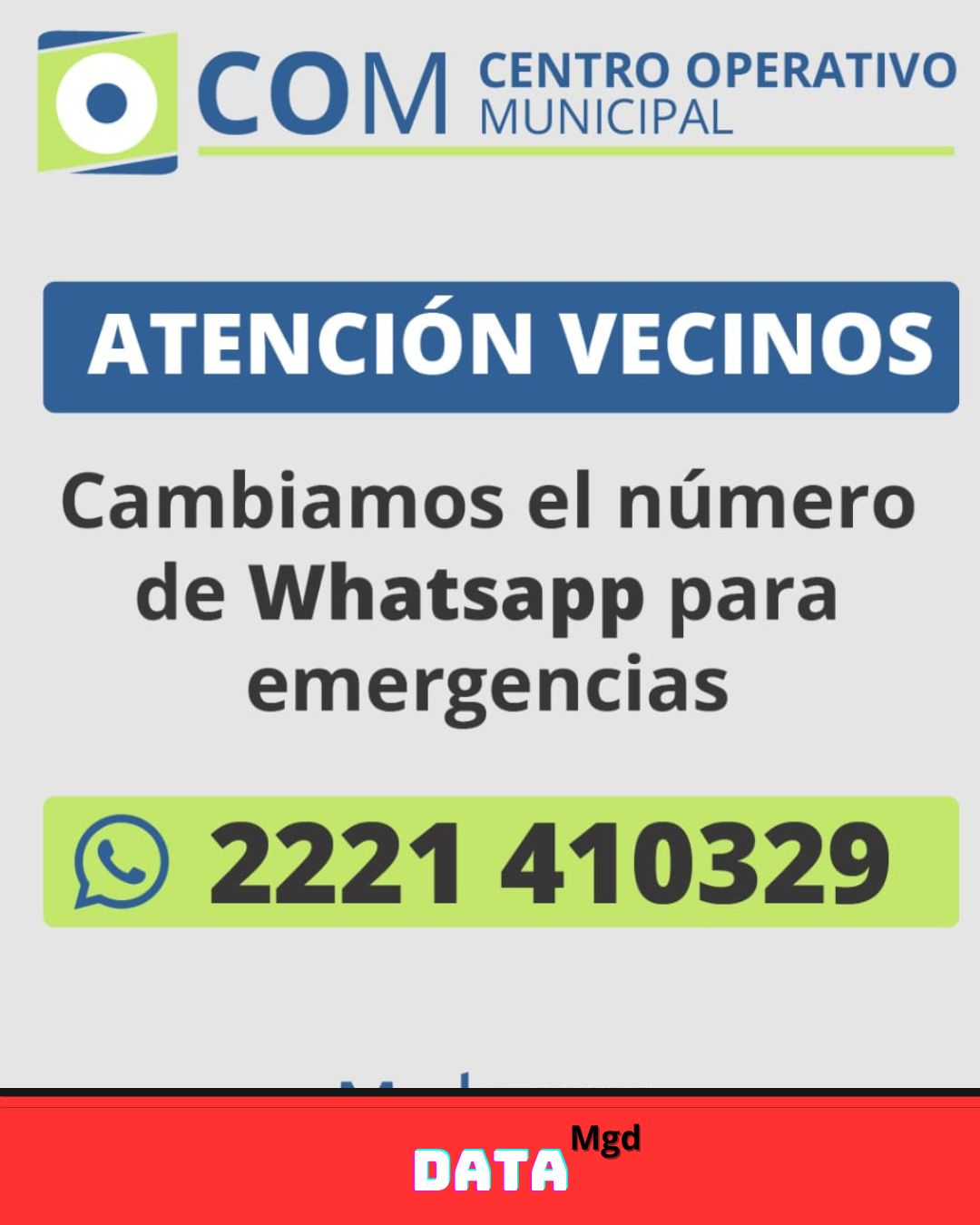 📱 A partir de ahora, cualquier vecino del Partido de Magdalena podrá comunicarse con el COM enviando un mensaje al número de WhatsApp 2221 410329. Esta iniciativa busca agilizar el proceso de atención, reduciendo tiempos de respuesta y mejorando la coordinación en situaciones de emergencia.