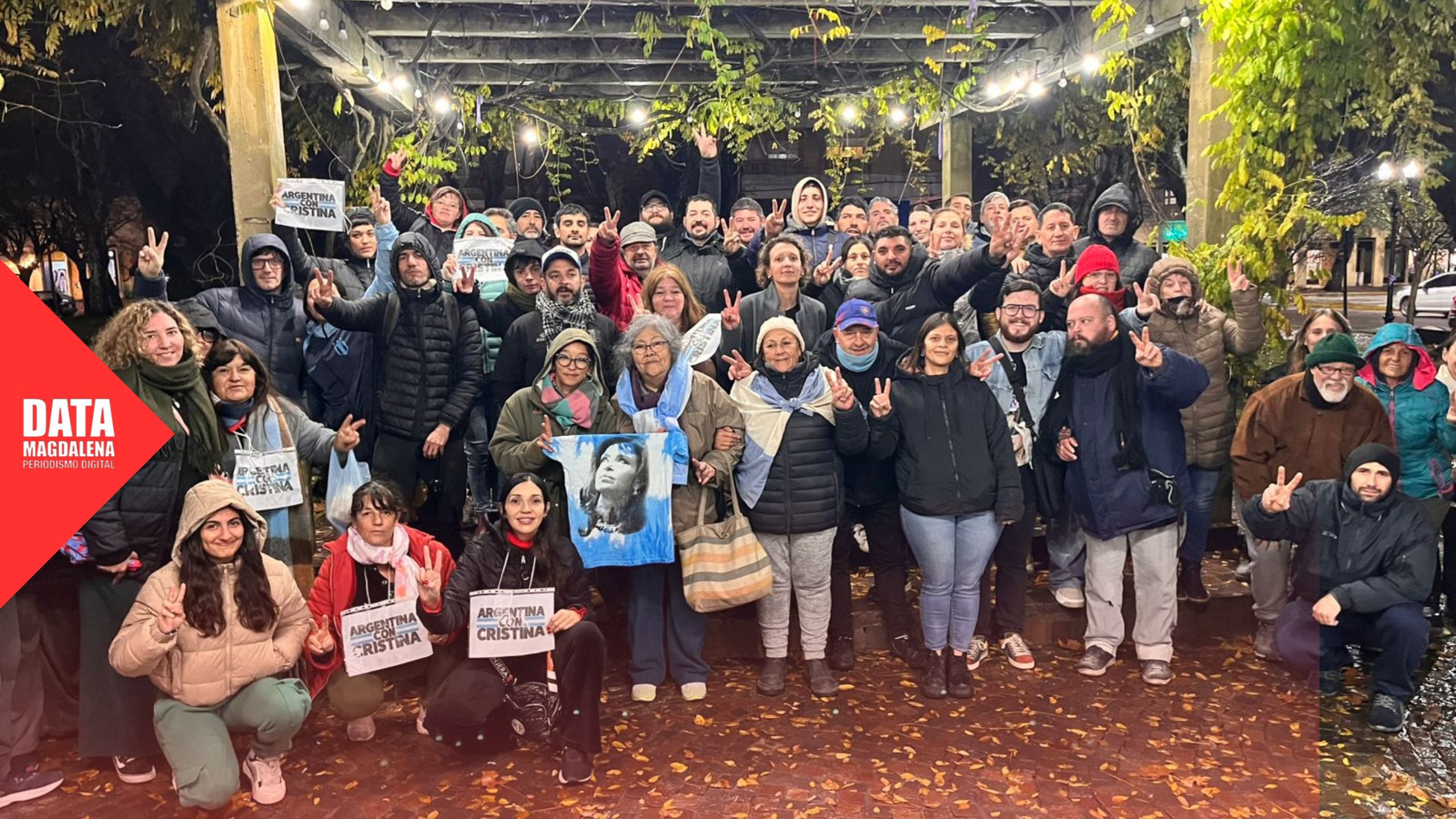 ?? Pese al frío y la lluvia, vecinos y militantes de Magdalena se congregaron esta tarde en la Plaza San Martín para expresar su rechazo a la confirmación de la condena judicial contra Cristina Fernández de Kirchner. La convocatoria formó parte de la movilización nacional #ArgentinaConCristina, impulsada tras el fallo de la Corte Suprema que ratificó la sentencia de prisión y proscripción política contra la ex presidenta.