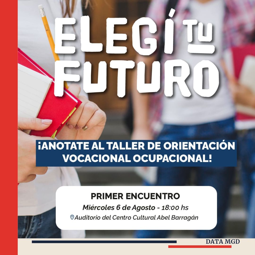📌 Vuelve una propuesta para quienes están definiendo su futuro. Ya están abiertas las inscripciones para el taller de orientación vocacional-ocupacional "Elegí tu Futuro", una iniciativa que, por segundo año consecutivo, ofrece un espacio pensado para reflexionar, descubrir intereses y tomar decisiones informadas.