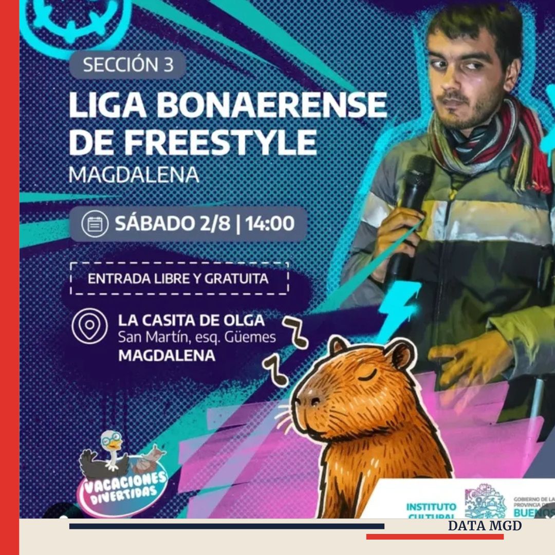 🎤 Este sábado 2 de agosto a las 14 hs, la plaza cultural se enciende con talento joven: llega a Magdalena la Sección 3 de la Liga Bonaerense de Freestyle, y la cita será en La Casita de Olga, ubicada en San Martín y Güemes. Una tarde a puro ritmo y batallas de alto nivel en la última regional del torneo, donde se define quiénes avanzan a la gran final provincial.