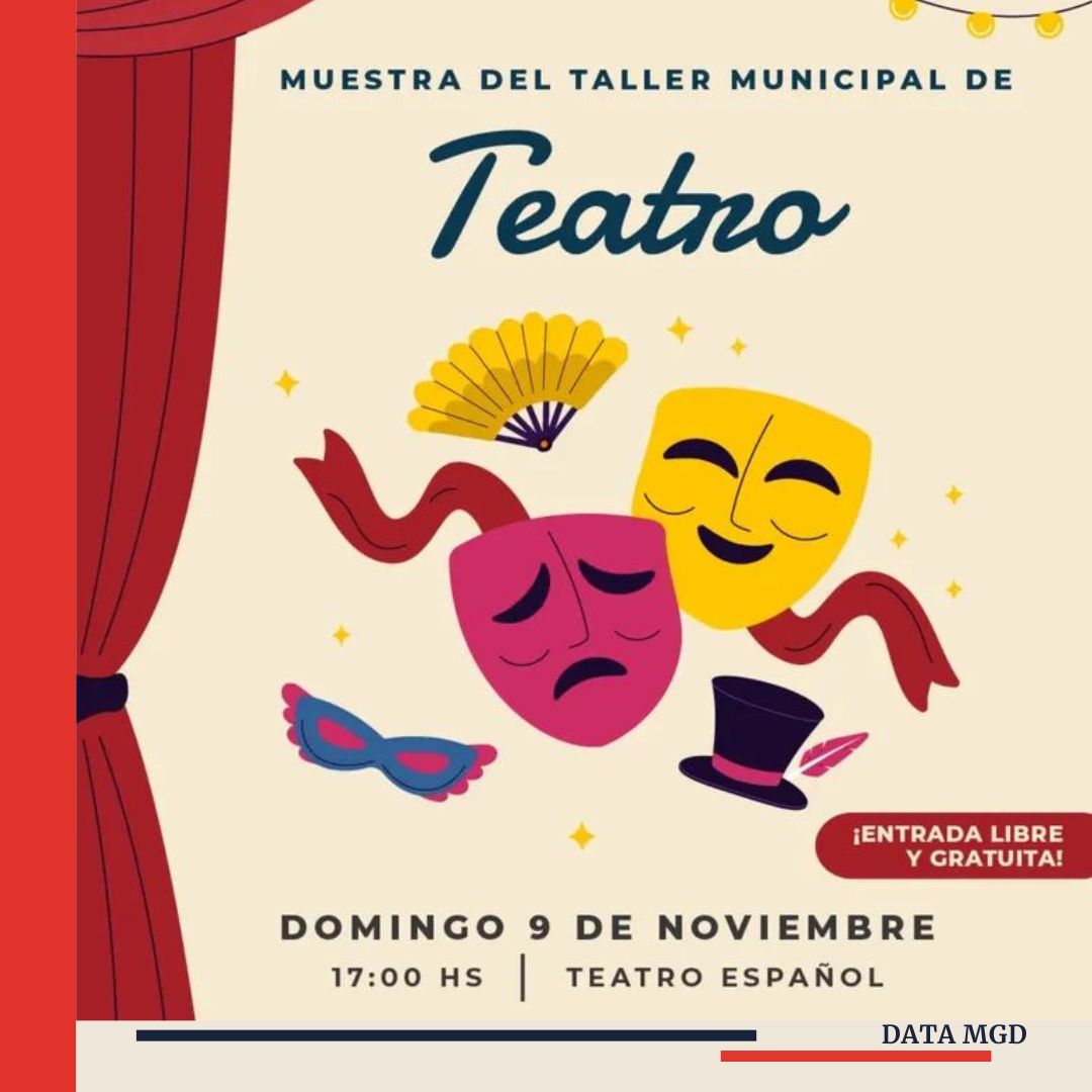 ✨ Este domingo 9 de noviembre, desde las 17 horas, el histórico escenario del Teatro Español de Magdalena será el punto de encuentro para disfrutar de una tarde especial: la muestra anual del Taller Municipal de Teatro, bajo la coordinación de Yésica Watson.