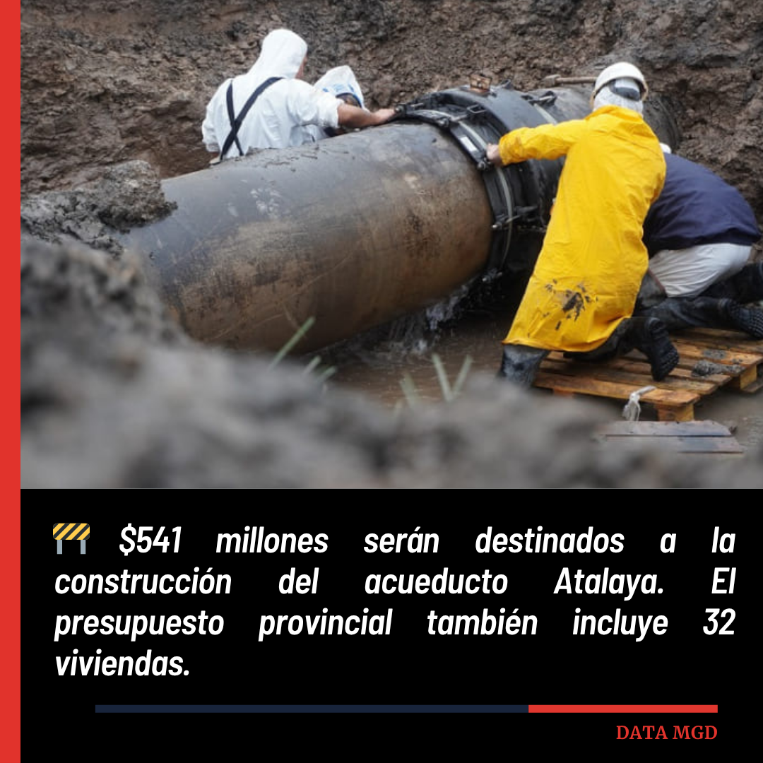 Entre los proyectos incluidos en la “ley de leyes”, se destaca el acueducto Atalaya, con una partida asignada de $541 millones. Esta obra forma parte del plan de ampliación y modernización del sistema de agua potable en el distrito, con el objetivo de mejorar la provisión y distribución del recurso tanto en la localidad cabecera como en la zona costera.