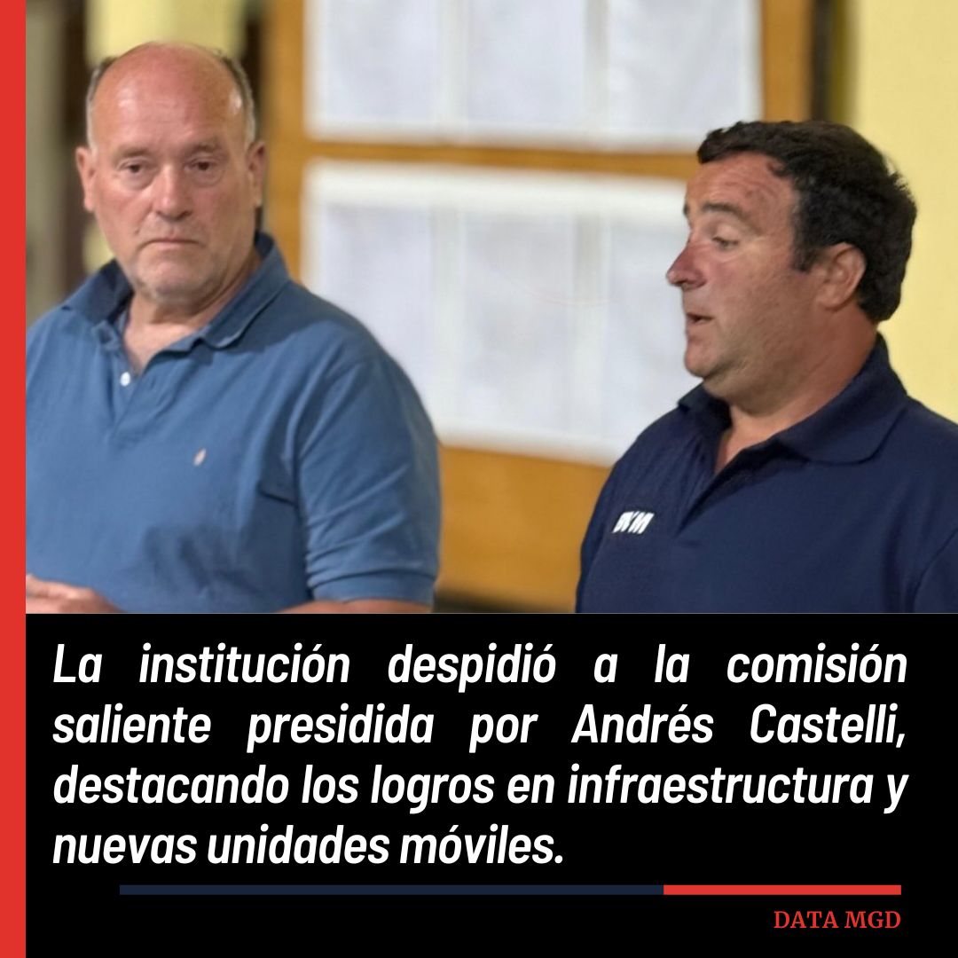 👏 Durante la asamblea, la institución despidió a la comisión presidida por Andrés Castelli, quien culminó un ciclo de varios años de gestión. Bajo su conducción, la entidad logró avances significativos en materia de infraestructura, adquisición de nuevas unidades móviles y fortalecimiento operativo. Mariscotti pidió “un fuerte aplauso para la comisión saliente”, destacando el trabajo sostenido en beneficio de la comunidad.