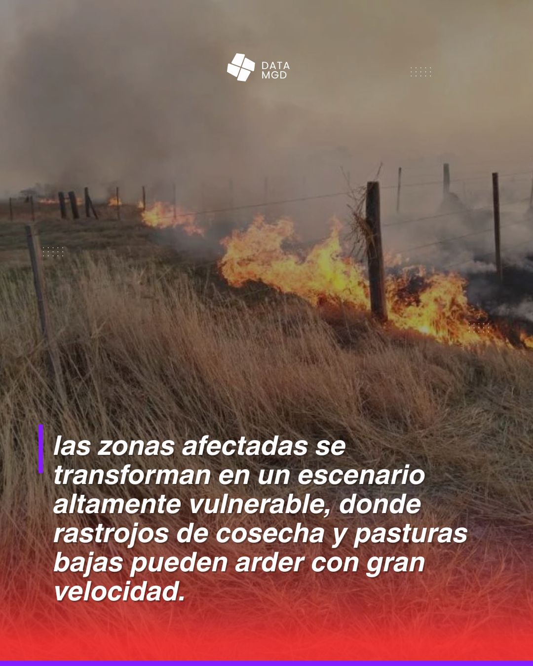 ? En este contexto, se advirtió que las condiciones de riesgo extremo se configuran cuando se combinan temperaturas superiores a los 30 grados, humedad menor al 30% y vientos que superan los 30 km/h. Bajo estos parámetros, las zonas afectadas se transforman en un escenario altamente vulnerable, donde rastrojos de cosecha y pasturas bajas pueden arder con gran velocidad.