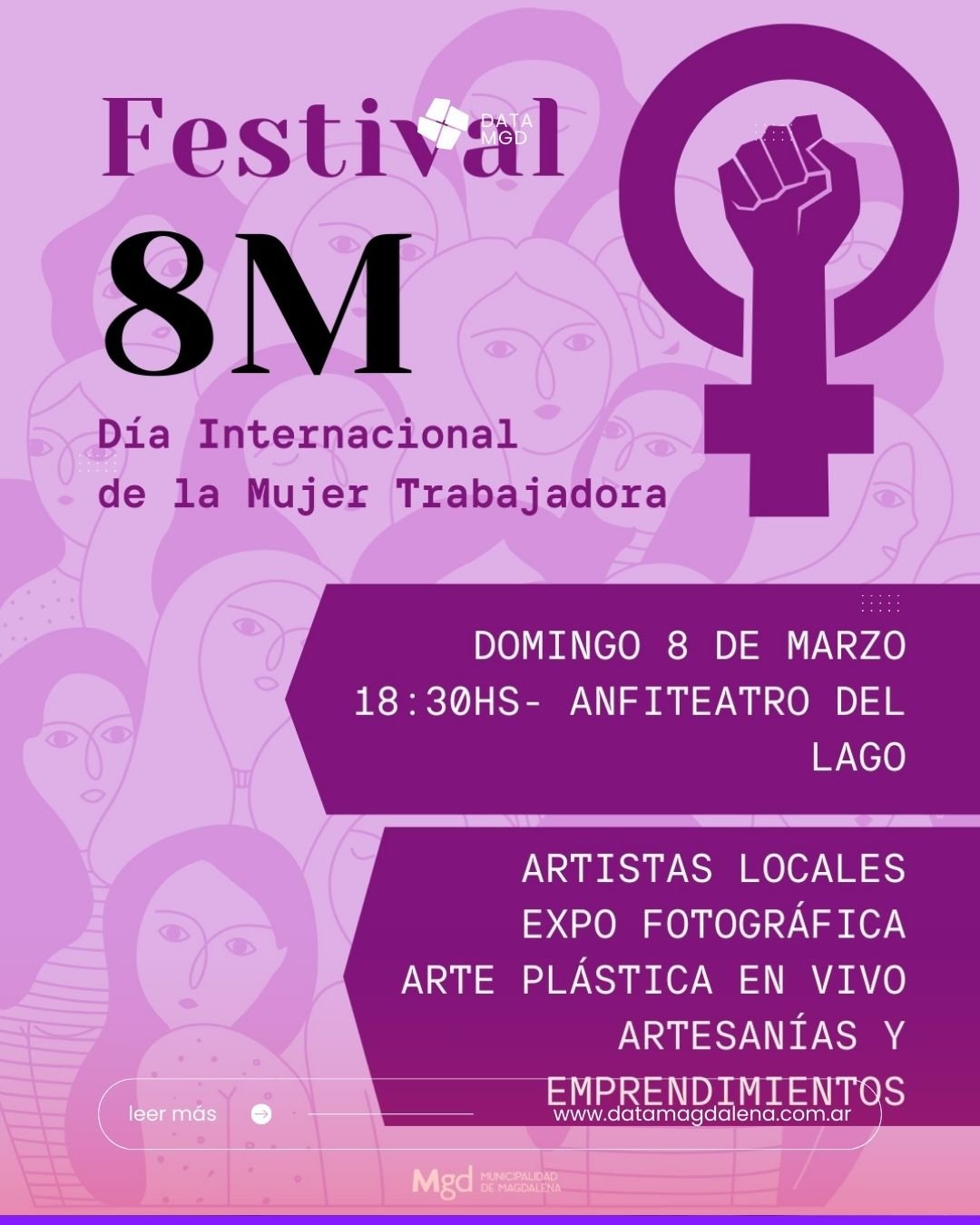 En el marco del Día Internacional de la Mujer Trabajadora, el municipio de Magdalena realizará un festival para visibilizar a mujeres artistas locales, actividad que tendrá lugar el domingo desde las 18:30 en el Anfiteatro del Lago.