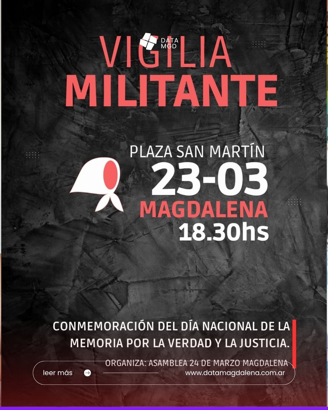 Vigilia por el 24 de marzo en Magdalena: actividades y convocatoria