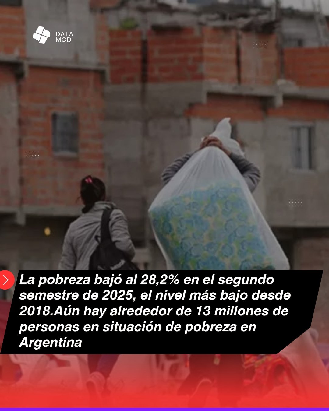 El Instituto Nacional de Estadística y Censos (INDEC) informó que la pobreza en Argentina se ubicó en 28,2% durante el segundo semestre de 2025, lo que representa una baja respecto al 31,6% registrado en el primer semestre del mismo año y marca el nivel más bajo desde 2018.