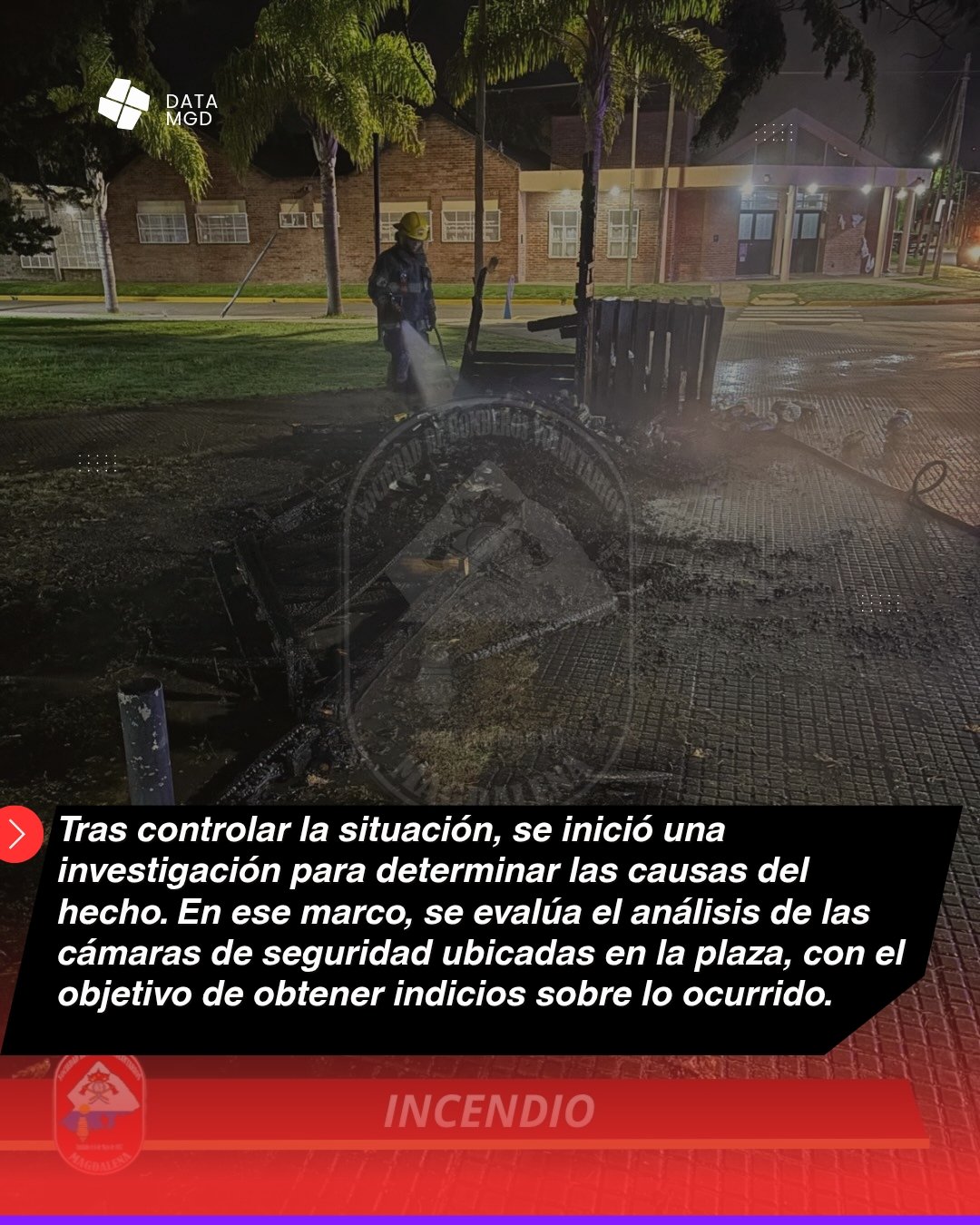 Tras controlar la situación, se inició una investigación para determinar las causas del hecho. En ese marco, se evalúa el análisis de las cámaras de seguridad ubicadas en la plaza, con el objetivo de obtener indicios sobre lo ocurrido.