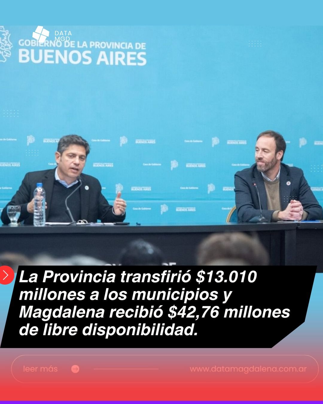 El anuncio fue acompañado por el ministro de Gobierno, Carlos Bianco, quien explicó que el giro se financia a partir de una reciente colocación de deuda provincial por $232 mil millones. “Nosotros no tenemos ningún problema en que el 100% de los recursos sea repartido a partir del CUD, esa fue la propuesta original del Ejecutivo”, señaló el funcionario, al tiempo que aclaró que cualquier modificación del esquema depende de la Legislatura.