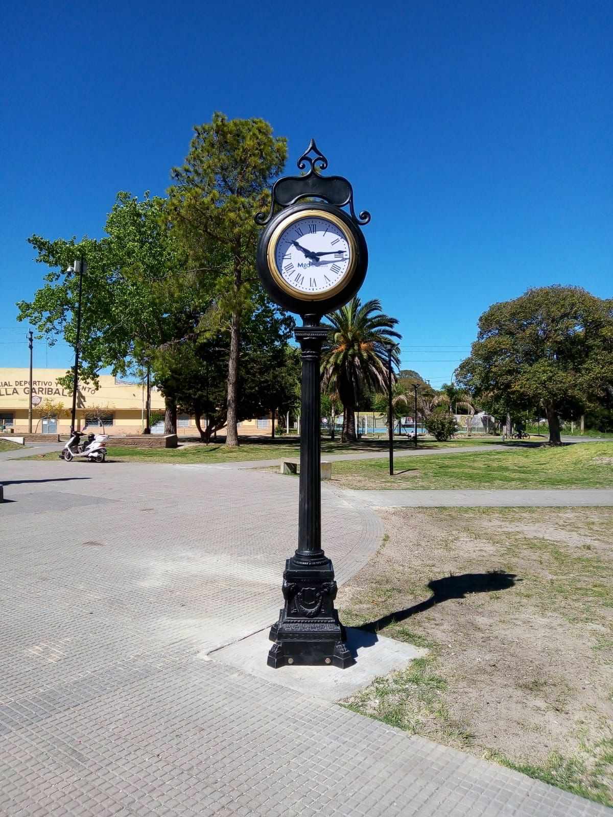 En este sentido, anteriormente se habia comenzado con al refacción de las baldozas y estacionamiento, colocación de los nuevos juegos que incluye el barco y el cerramiento del espacio de recreación, continuando con el cambio de iluminaria de socio por luces led y finalmente con el reloj.Este nuevo artefacto que se coloco en la plaza, tiene la particularidad de que se ilumina en horas nocturnas.