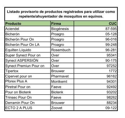 Repelentes para mosquitos utilizables en caballos. (Ver lista abajo)